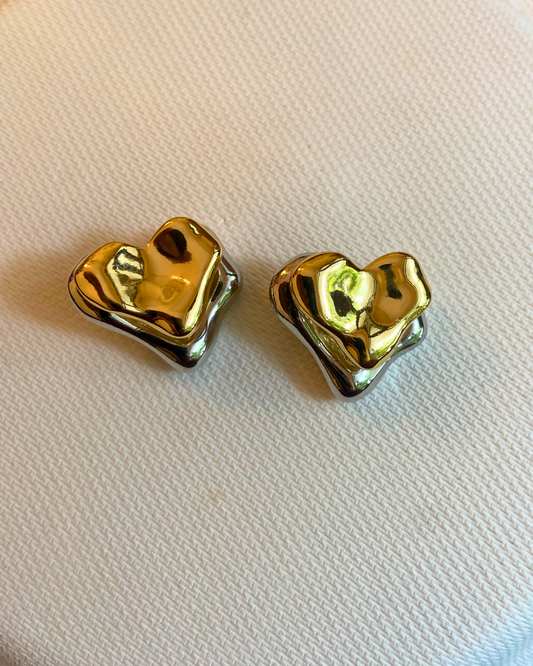 Dual Toned Adjustable Heart Studs 18K Gold Plated